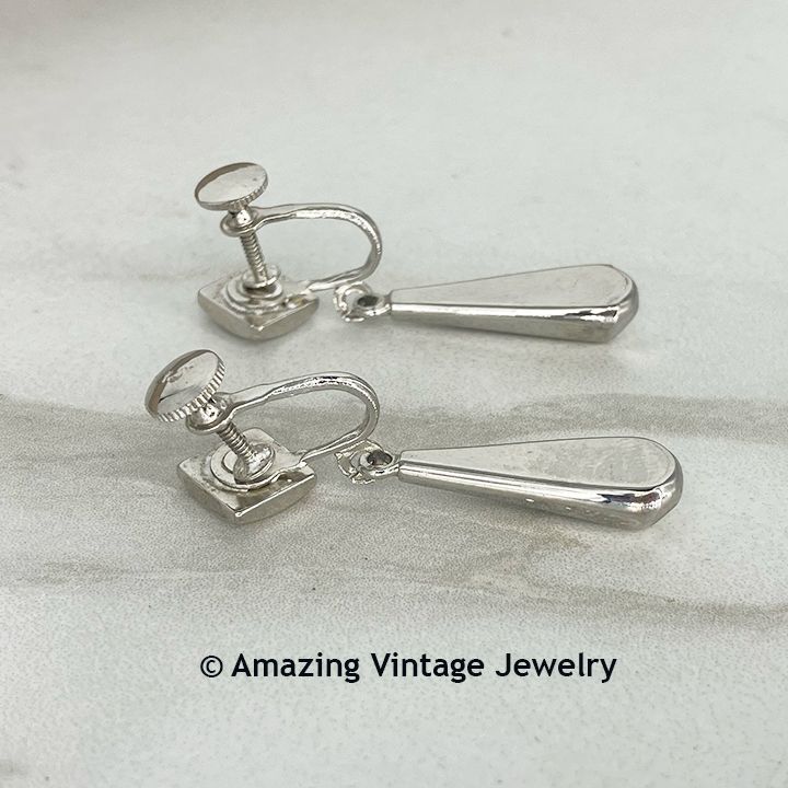 Earrings - Sarah Coventry. "GAY CHANDELIER" from 1958. Electroplated Rhodium dangles. Screwback. 1 1/2" long, 5/16" wide at the bottom. Excellent condition - appear to have never been worn. Fairly heavy - nice quality!