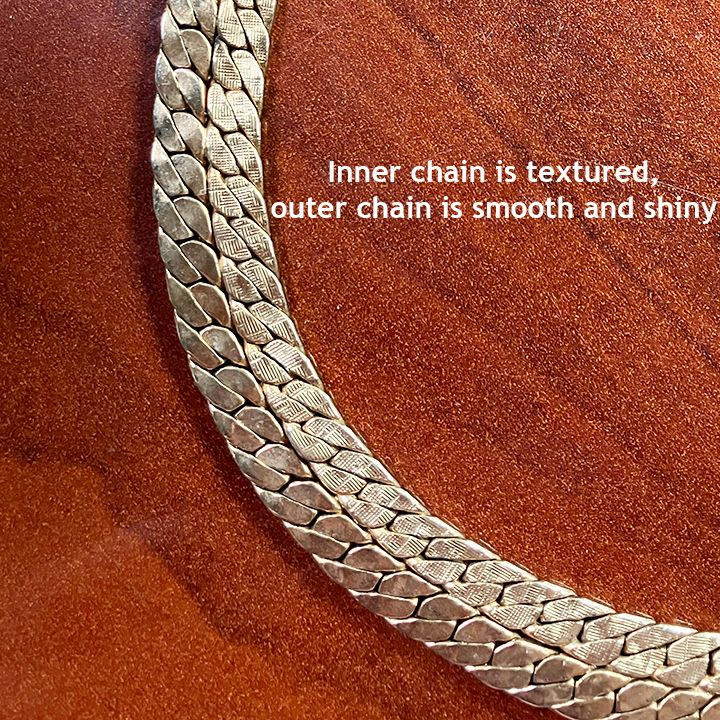 Necklace - Sarah Coventry. "LADY LINKS" 1980 Hostess gift. Two-strand look necklace in goldtone links, one shiny, one textured. Never sold, but only earned by hostesses. About 15" long, 1/2" wide. Very good condition overall condition with wear to the underside.