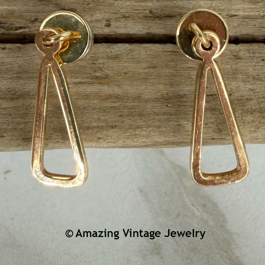 Earrings - Sarah Coventry. "TANGO" from 1977. Small goldtone geometric pierced earrings. About 13/16" long. Very good condition.